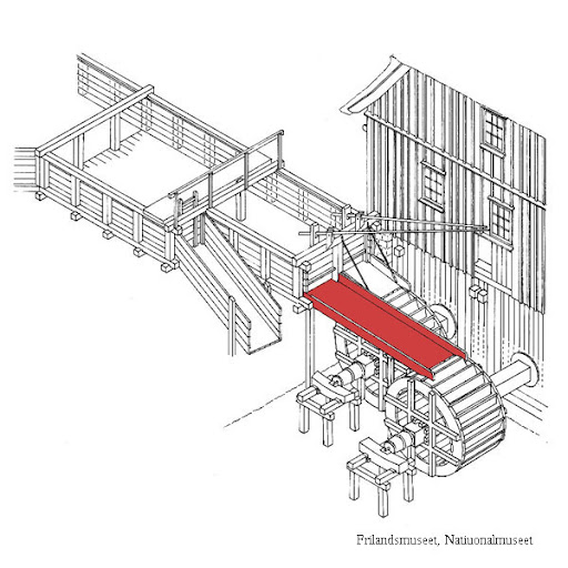 Vandet løber fra mølledammen til vandhjulet via malerenden. Malerenden var ofte lavet af brædder på en tømmerkonstruktion af bjælker. For at regulere vandtilførslen var der ofte flere stigborde. Ved at sænke stigbordene kunne man stemme for vandet og dermed få vandet i mølledammen til at stige. Ved at trække for vandet gav man vandhjulene vand og satte dem derved i gang.