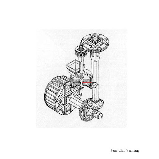 Skråkværnen består af to kværnsten der betegnes som henholdsvis løberen og liggeren. Liggeren er den underste sten der ligger stille, enten direkte på gulvet eller på en jernplade. Under brugen slides stenen skæv, idet den slides mere i den side hvor kammene griber ind i drevet. Denne side kaldes derfor træksiden. Da det er vigtigt at liggeren altid er i vater må der rettes op på skævheden med kiler.