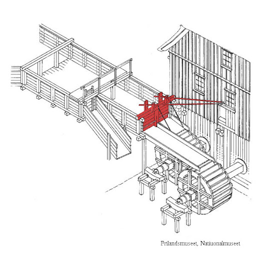 Vandet løber fra mølledammen til vandhjulet via malerenden. Malerenden var ofte lavet af brædder på en tømmerkonstruktion af bjælker. For at regulere vandtilførslen var der ofte flere stigborde. Ved at sænke stigbordene kunne man stemme for vandet og dermed få vandet i mølledammen til at stige. Ved at trække for vandet gav man vandhjulene vand og satte dem derved i gang.