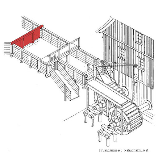 Vandet løber fra mølledammen til vandhjulet via malerenden. Malerenden var ofte lavet af brædder på en tømmerkonstruktion af bjælker. For at regulere vandtilførslen var der ofte flere stigborde. Ved at sænke stigbordene kunne man stemme for vandet og dermed få vandet i mølledammen til at stige. Ved at trække for vandet gav man vandhjulene vand og satte dem derved i gang.