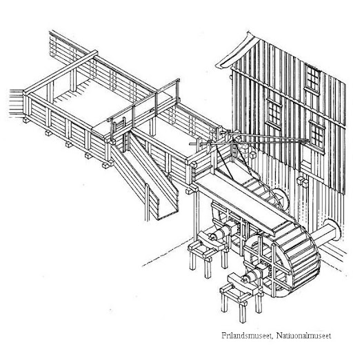 Vandet løber fra mølledammen til vandhjulet via malerenden. Malerenden var ofte lavet af brædder på en tømmerkonstruktion af bjælker. For at regulere vandtilførslen var der ofte flere stigborde. Ved at sænke stigbordene kunne man stemme for vandet og dermed få vandet i mølledammen til at stige. Ved at trække for vandet gav man vandhjulene vand og satte dem derved i gang.