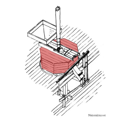Kværnstenene ligger i ringkarret. Det var et kar af træ, der ofte var rundt eller henholdsvis otte- eller sekskantet. Det runde ringkar bestod af tre eller fire dele holdt sammen af kroge. Ofte var der en krans foroven og forneden på selve ringkarret. Oven på ringkarret var et dæksel af to stykker træ med klodser under, så det ikke skred ud men blev liggende som låg over ringkarret. Omkring den underste kværnsten var en krans af træ kaldet slinken, med en slinkering af jern omkring. Ringkarret hviler på slinken.